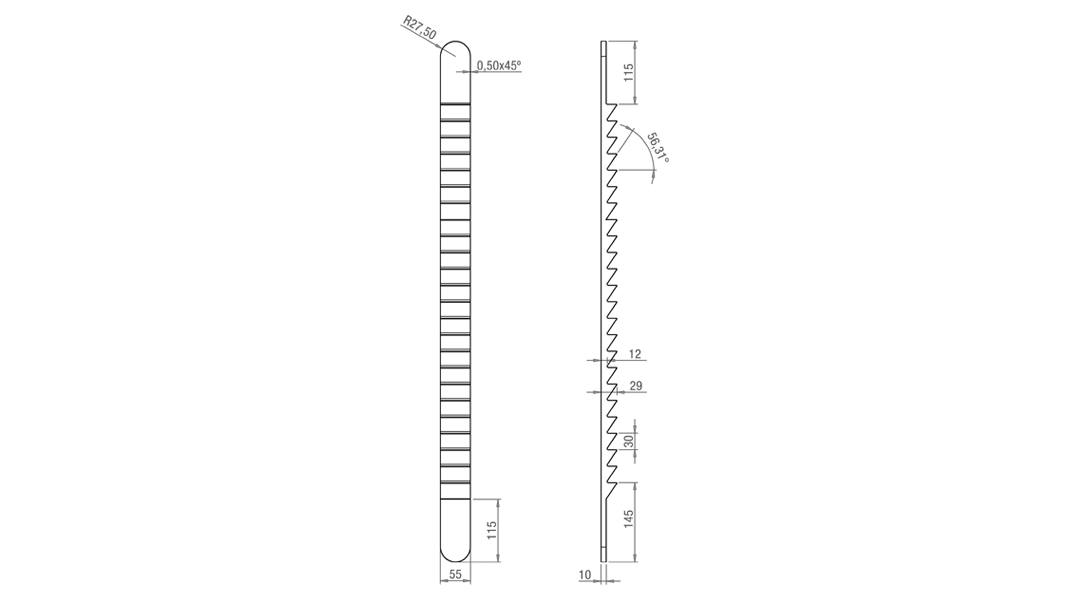 Dimensões: 30x55x950mm