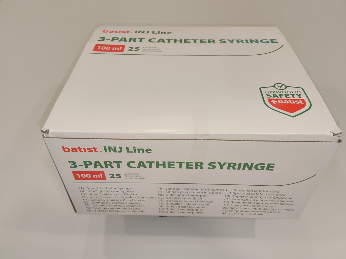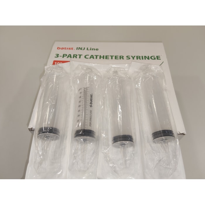 Seringa atóxica e apirógena em material plástico adequado para uso médico composto de: • cilindro em polipropileno medical transparente com escala graduada de 2 ml com intervalos de 10 ml de cor preto • cone cateter central • haste do cilindro em polipropileno medical • pistão livre de látex para uma fluência controlada. O lubrificante utilizado para facilitar o deslizamento do pistão é de silicone atóxico para uso médico. Utilização prevista: Seringa para infusões, destinada à irrigaçãoda bexiga, ao uso parenteral e à colheita, estéril, em 3 peças, quimicamente estável